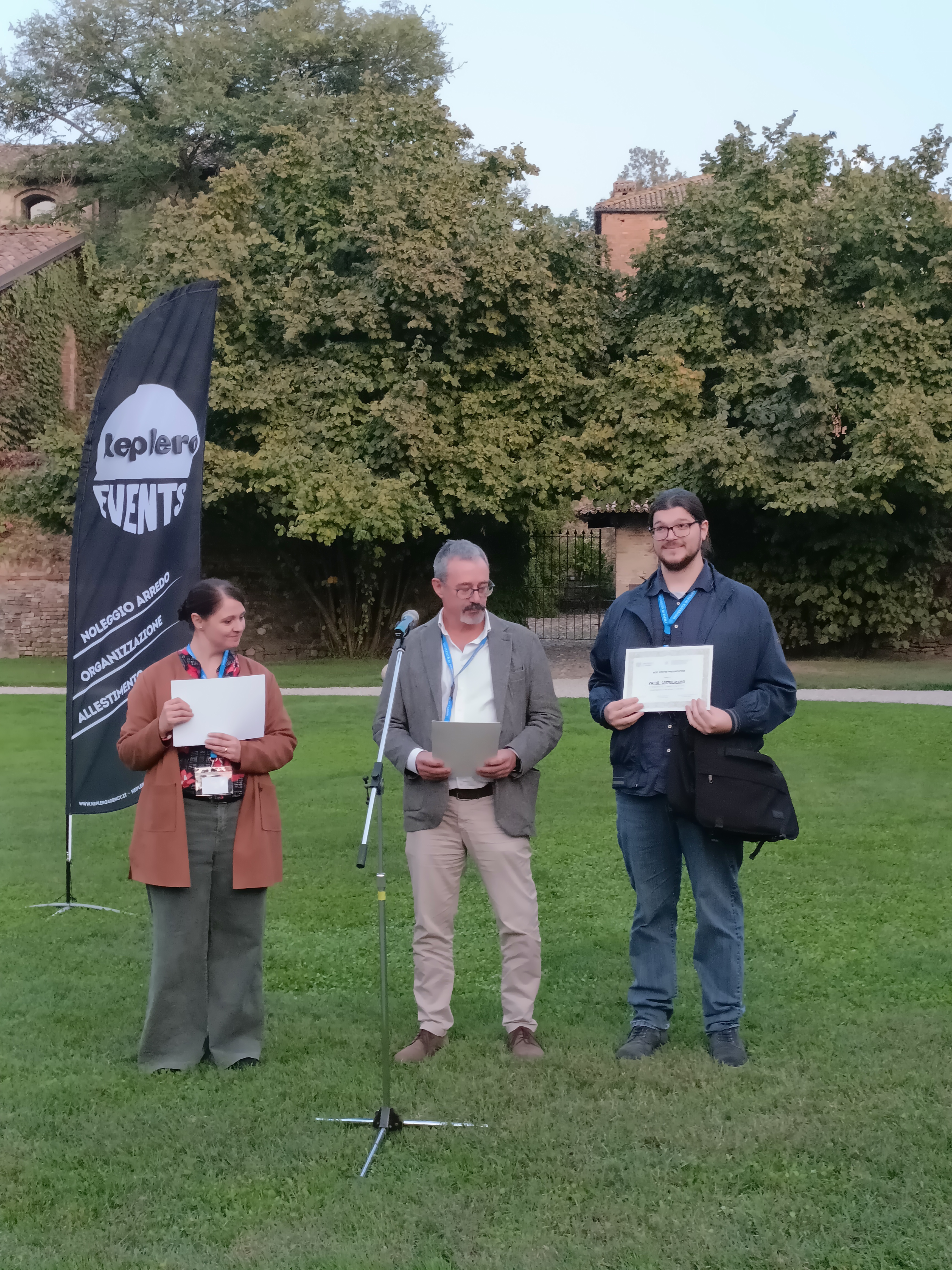 Al termine della giornatasono stati conferiti i premi per le migliori presentazioni orali a Francesca Ferroni (Laboratorio di Psicologia Generale e Psico-fisiologia Cognitiva, Dipartimento di Medicina e Chirurgia DIMEC), Rebecca Navacchi (Unità di Cardiologia, Azienda Ospedaliero-Universitaria AOU di Parma), Silvia Berrettoni (TecMed Lab, DIMEC), Francesca Bagnaresi (Laboratorio di Endocrinologia, DIMEC) e Carmen Guzman Garcia (Dipartimento di Ingegneria e Architettura Unipr) e per le migliori presentazioni poster a Marco Salvi (Unità di Geriatria, AOU Parma), Mattia Castellucchio (Laboratorio di Patologia Generale, DIMEC), Giulia Pozzi (Laboratorio di Anatomia Umana e Biologia Applicata del Sistema Ematopoietico, DIMEC) e Alessia Ciringione (Laboratorio di Biochimica, Biologia Molecolare e Oncometabolismo, DIMEC).